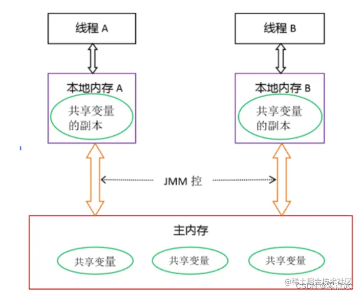 - 所有的变量都存储在主内存中,同时每个线程拥有自己独立的工作内存,而工作内存中的变量的内容是主内存中该变量的拷贝