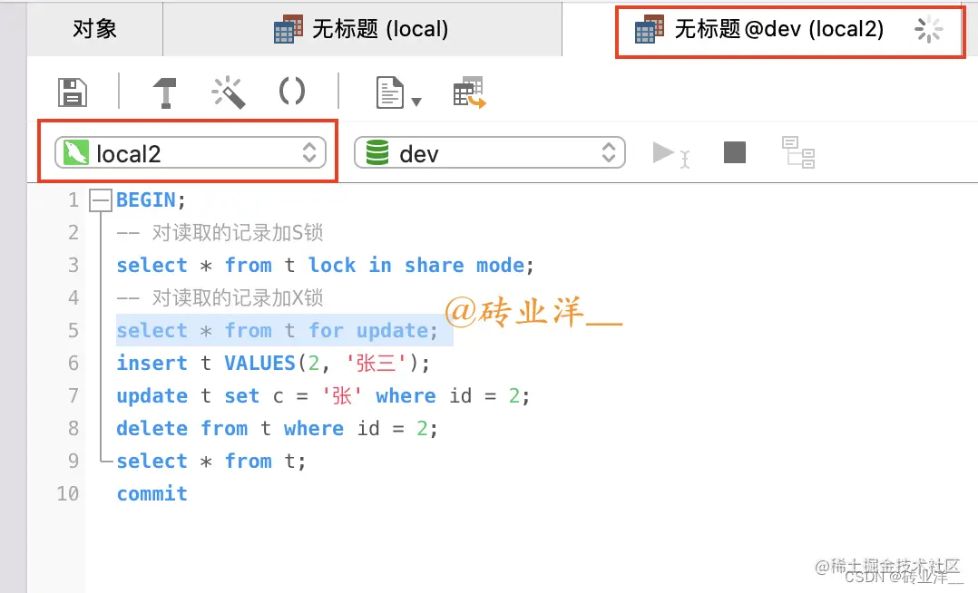 Shared Locks):简称S锁。在事务要读取一条记录时,需要先获取该记录的S锁。多个事务可以同时对一条记录持有S锁,但如果一个事务持有X锁,其他事务则不能获得该记录的S锁。 - 独占锁(