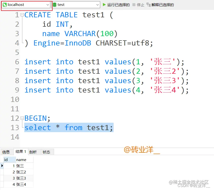 假设有两个事务,事务 A和事务 B。将使用如下表: