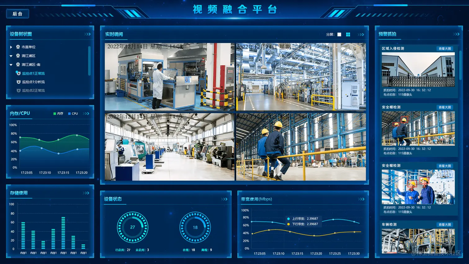 智能分析网关V2是基于边缘AI计算技术,可对前端摄像头采集的视频流进行实时检测分析,能对监控画面中的人、车、物进行识别,可实现的检测包括:人脸检测与识别、车辆检测与识别、烟火识别、安全帽/反光衣识别、区域入侵识别等,支持对检测到的异常进行实时告警、抓拍、推送。