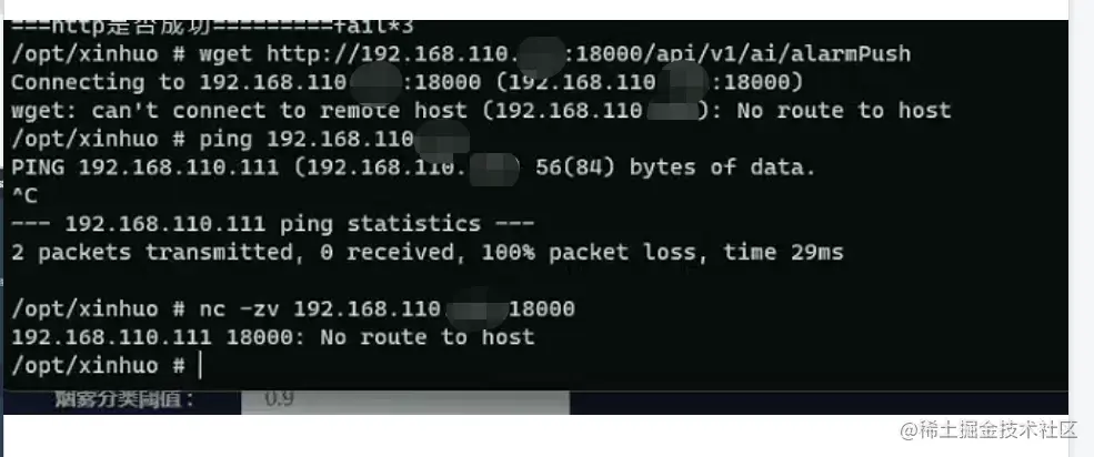 4)V2盒子在配置时,需要能访问到推送到平台的地址,进入V2算法盒子后台查看推送地址,发现访问不到平台的IP地址;