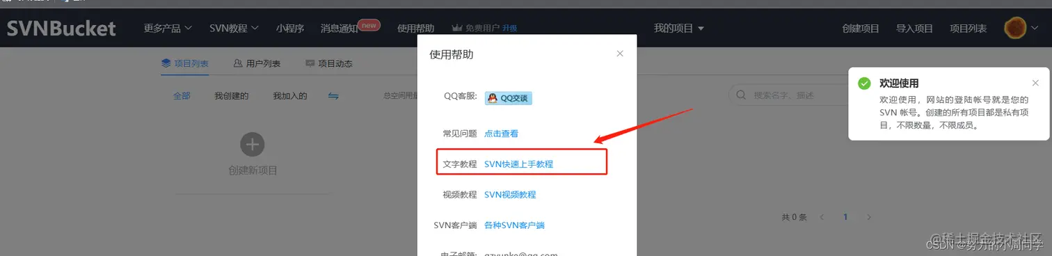 - 下载svn客户端,点击使用帮助,找到svn客户端下载点击进入到下载界面