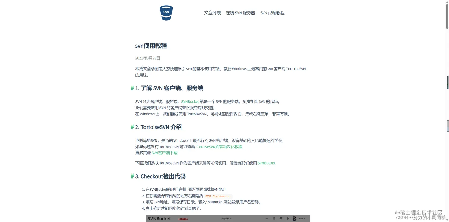 - 检出代码:使用svn checkout命令将代码从版本库中复制到本地工作目录中。