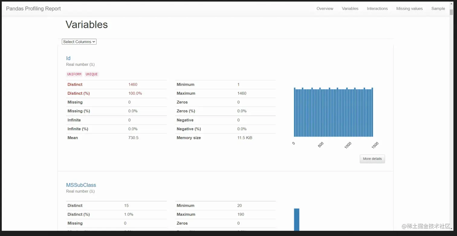 这个 pandas-profiling 库为你提供了一种生成给定数据帧的分析报告的方法。