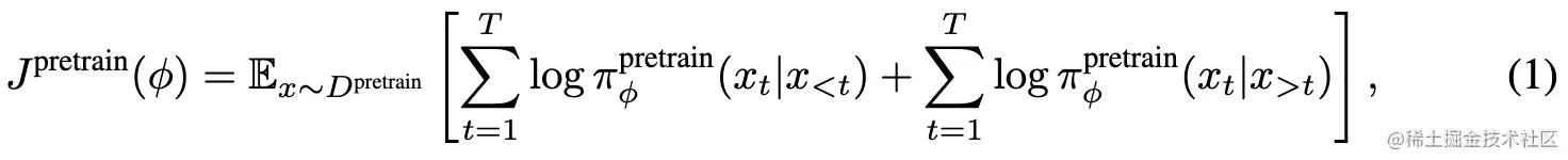 BatGPT 是使用双向自回归语言建模目标进行预训练的,这是传统自回归目标的修改版本,模型通过学习基于先前看到的所有 token 和前向和后向上来预测下一个 token,使得模型能够捕捉到这两个方向上的依赖关系。给定序列 ,预训练的 BatGPT 输出从序列的两端获取的每个位置上可能 token 的分布: 通过最大化这个分布,BatGPT 学习捕捉在其训练数据所囊括的广泛数据中内在的复杂的语言模式、语义和结构,从而产生更连贯和流畅的输出。