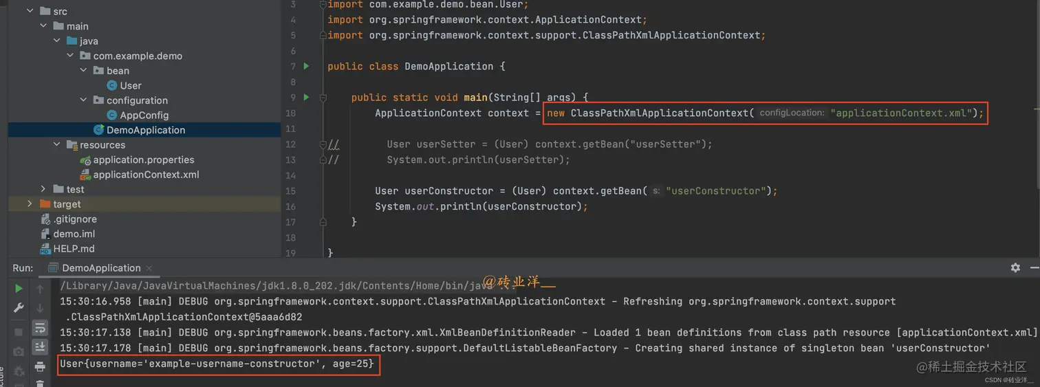 <bean id="userConstructor" class="com.example.demo.bean.User">
