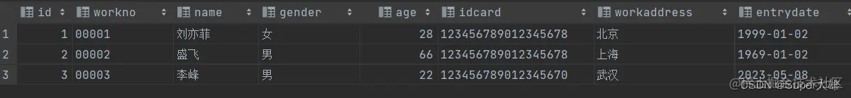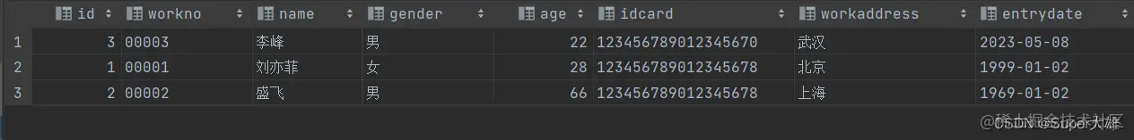 (2,'2','哈哈','男',22,'123456789012345678','上海','2001-01-01');