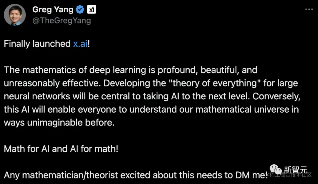 对此,xAI的另一位联合创始人Greg Yang表示,xAI初创公司将深入研究AI的一个重要领域——深度学习数学 ,并且做到「万物皆可大型神经网络」,从而将AI推向新的高度。