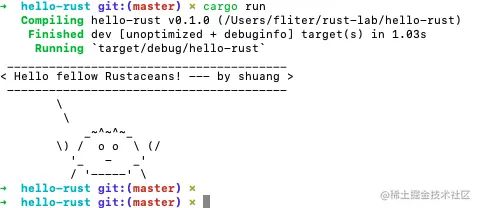 let message = String::from("Hello fellow Rustaceans! --- by shuang");