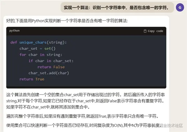 Claude 2 不仅可以编写代码,还能解释代码。可以看出,Claude 2 的中文能力相当出色,不仅能够分析代码,还能介绍算法的复杂度。你可以给 Claude 2 一段代码让它进行分析,它也能做得很出色。