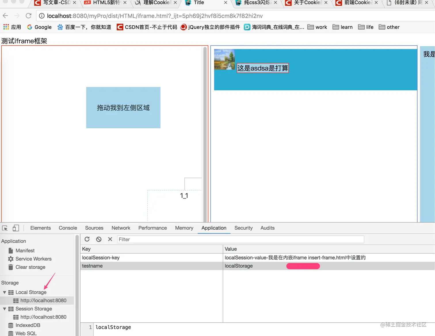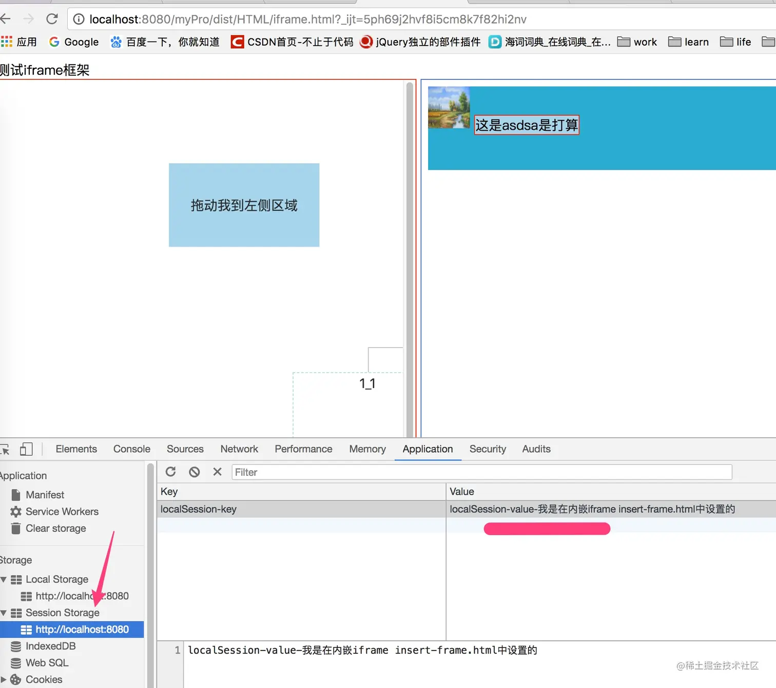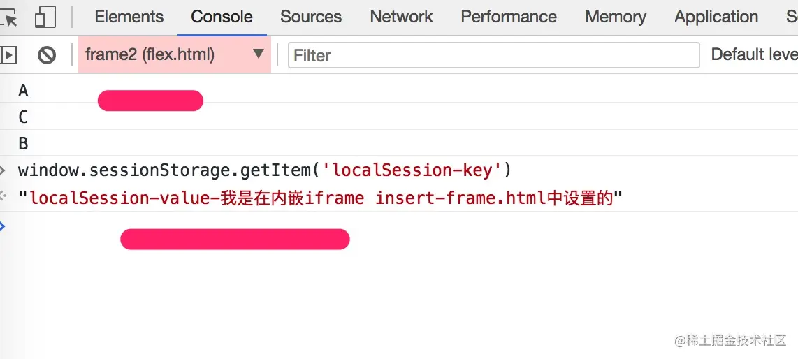 上述代码我们在一个住页面中设置了三个iframe,然后在第三个内嵌的iframe中分别设置了LocalStorage和SessionStorage。我们在浏览器的Application中查看一下我们设置的值:
