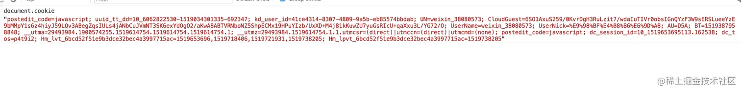 想要查看一个页面的cookie十分简单,只需要在控制台上输入:document.cookie即可,如下图: