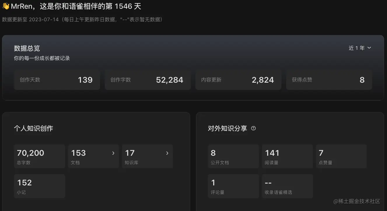 参加冴羽大佬的社群收获也蛮多,读书的习惯也是培养起来了。到目前23年阅读143天,累计99小时44分钟(我想写个100个小时,怕你们不信)。阅读真的是值得投入时间做的事情,一来开阔了眼见,二来还可以装逼。