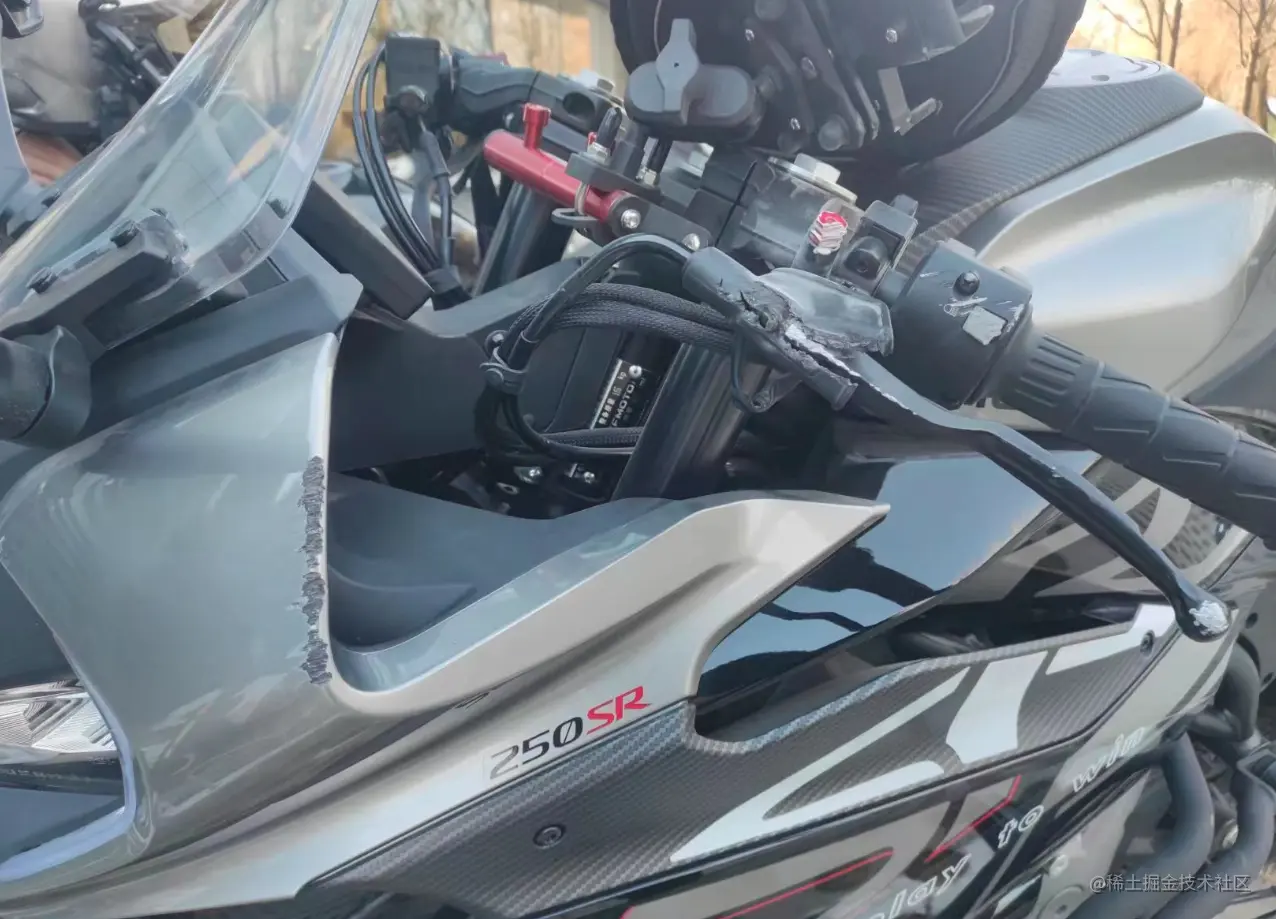 毕业第三年,考了驾照买了摩托车。终于买车了(^_^)【标题党了哈哈】。由于能力问题买个两轮的 SR250 ,取名 “小乌龟”。起两周后惨烈的摔车了。