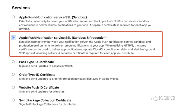 如果你仅仅想测试在沙箱环境的推送,可以选择Apple Push Notification service SSL (Sandbox)