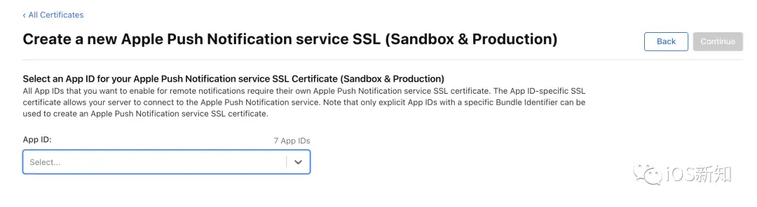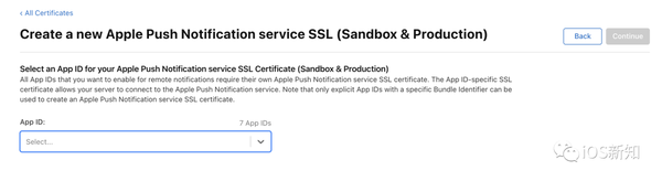 点击继续后,进入下一步,选择你要推送的应用对应的 App ID: