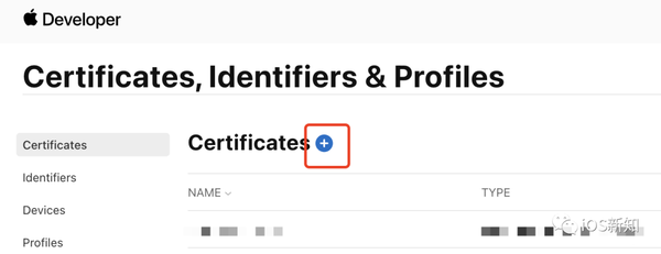 然后点击 Certificates 旁边的加号: