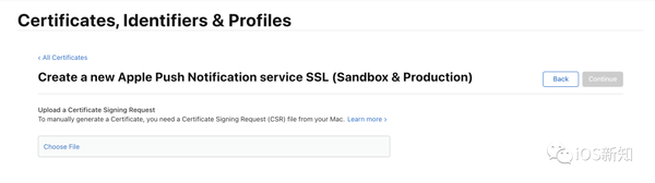 点击继续后,进入下一步,上传 .certSigningRequest 文件