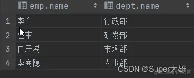 3.3.2 查询每一个员工的姓名,及关联的部门的名称(显示内连接实现)