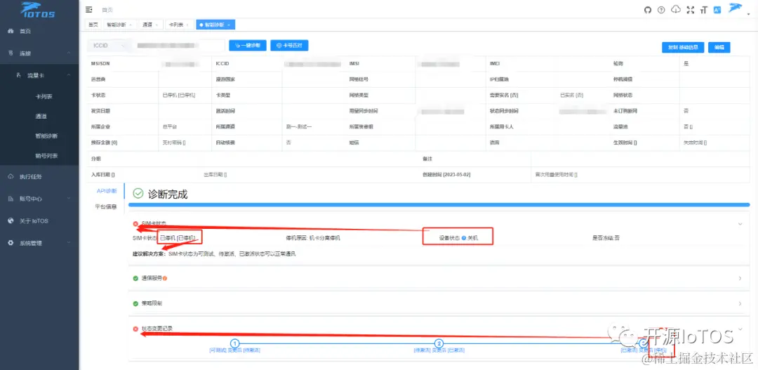 目前还原OneLink官方智能诊断功能包括动效、诊断建议等可供诊断的接口基本全部覆盖;(卡状态、冻结状态、停机原因、区域限制状态、区域限制地区、设备状态、业务变更历史、已开通APN查询、诊断建议提示)
