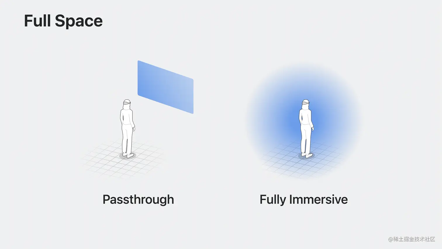 - 可以选择渲染到完全沉浸式的空间以填充整个视野。