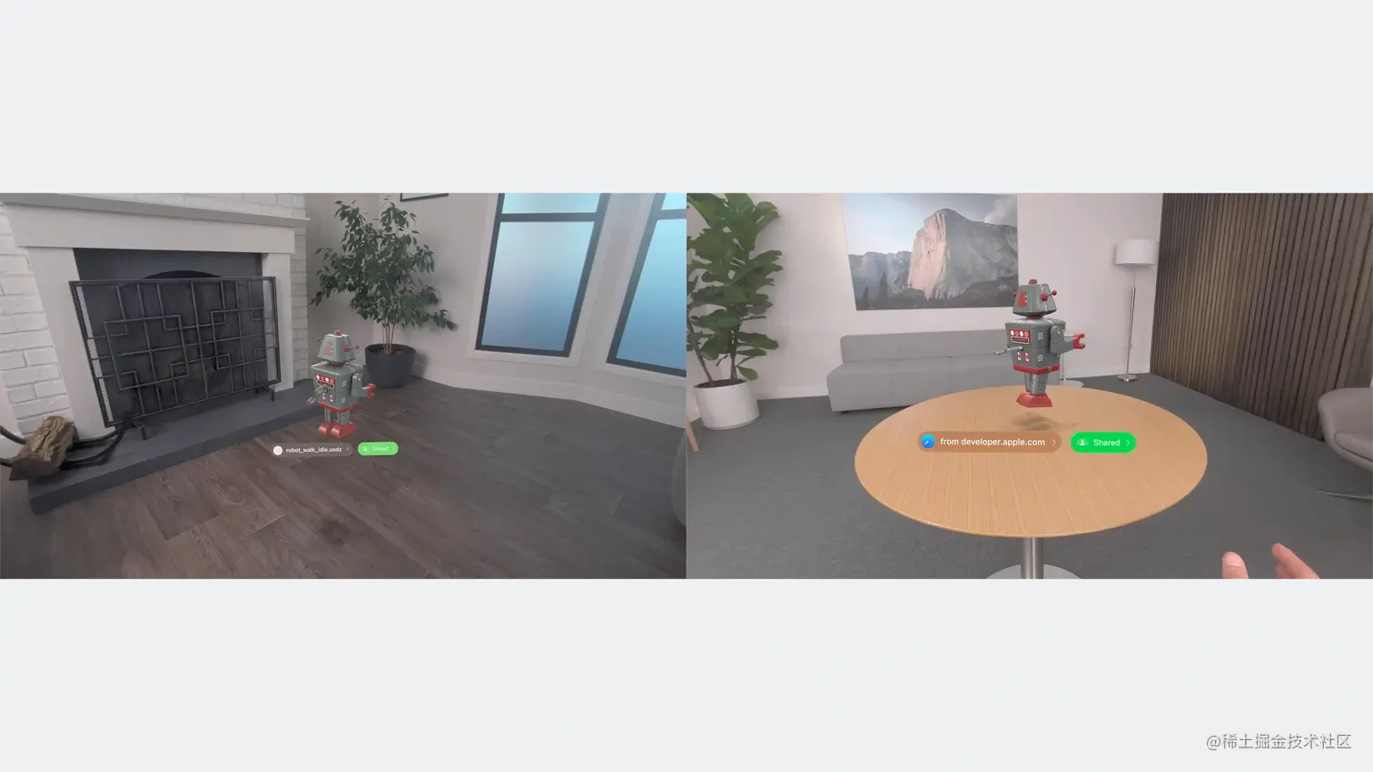当播放 Spatial Audio 并通过 RealityKit 渲染 3D 时,将自动利用设备不断更新对房间的理解,将视觉和声音融入人们的周围环境,让他们感觉这些虚拟对象确实属于他们的房间。