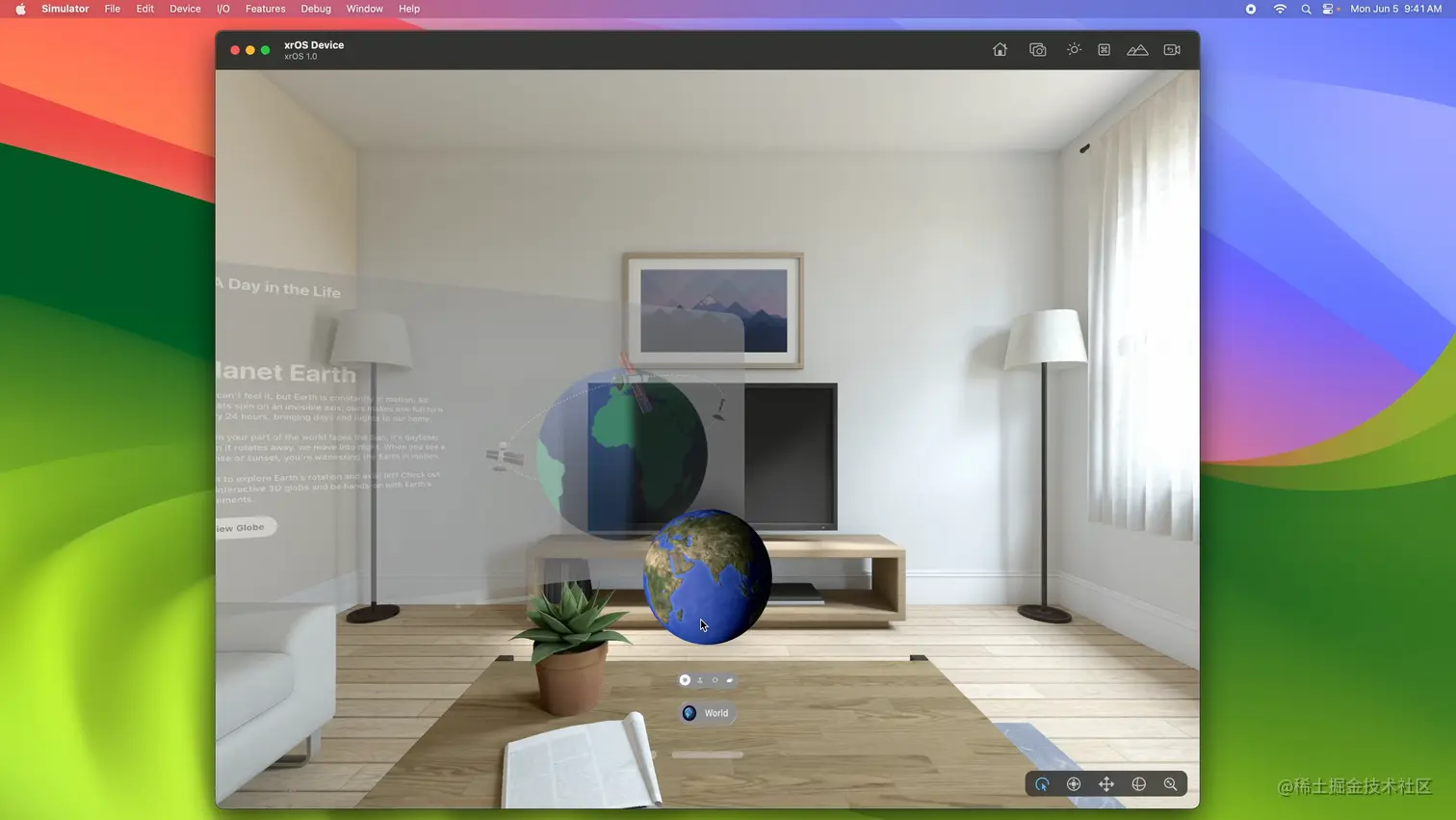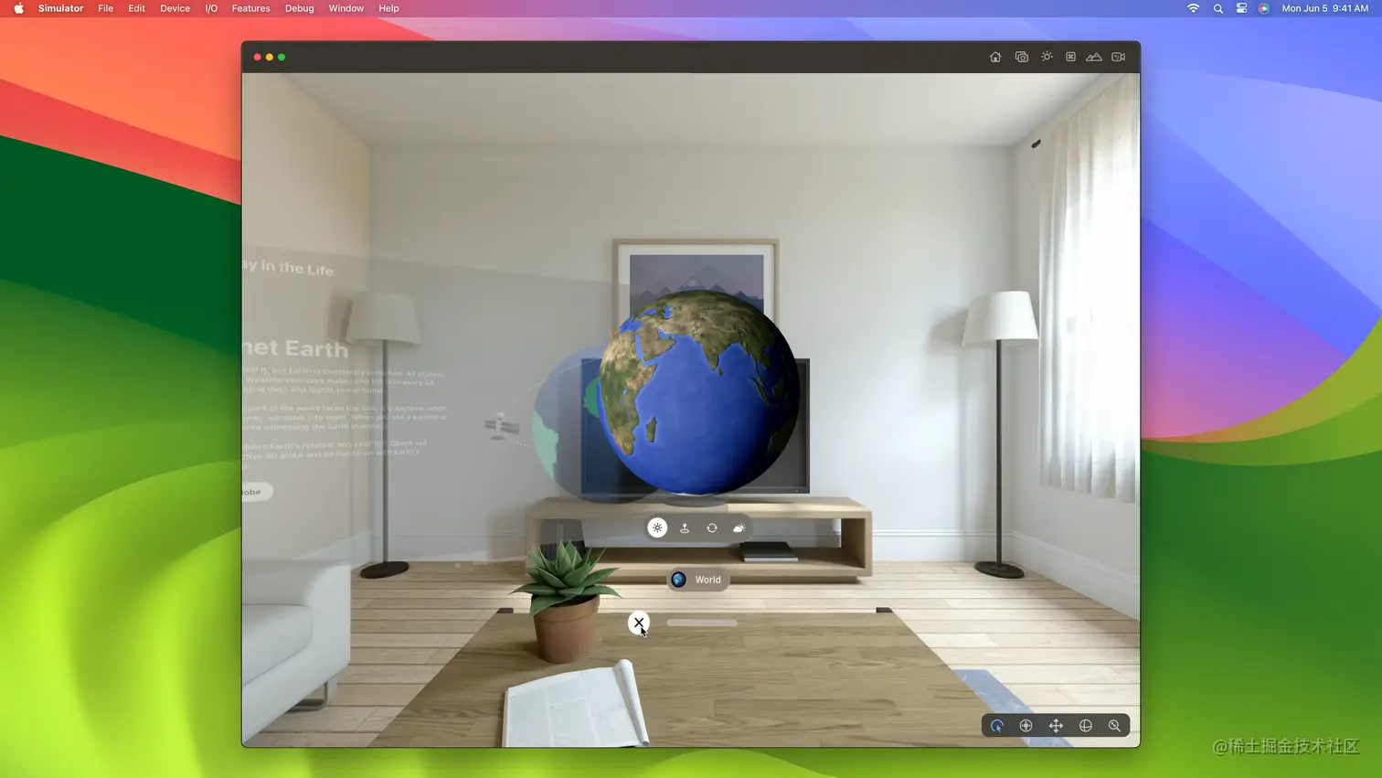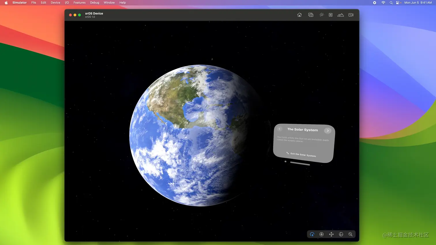 SwiftUI 和 3D 内容现在可以无缝协作,返回我们的主窗口并选择行星地球给我们带来了一个新的视图。