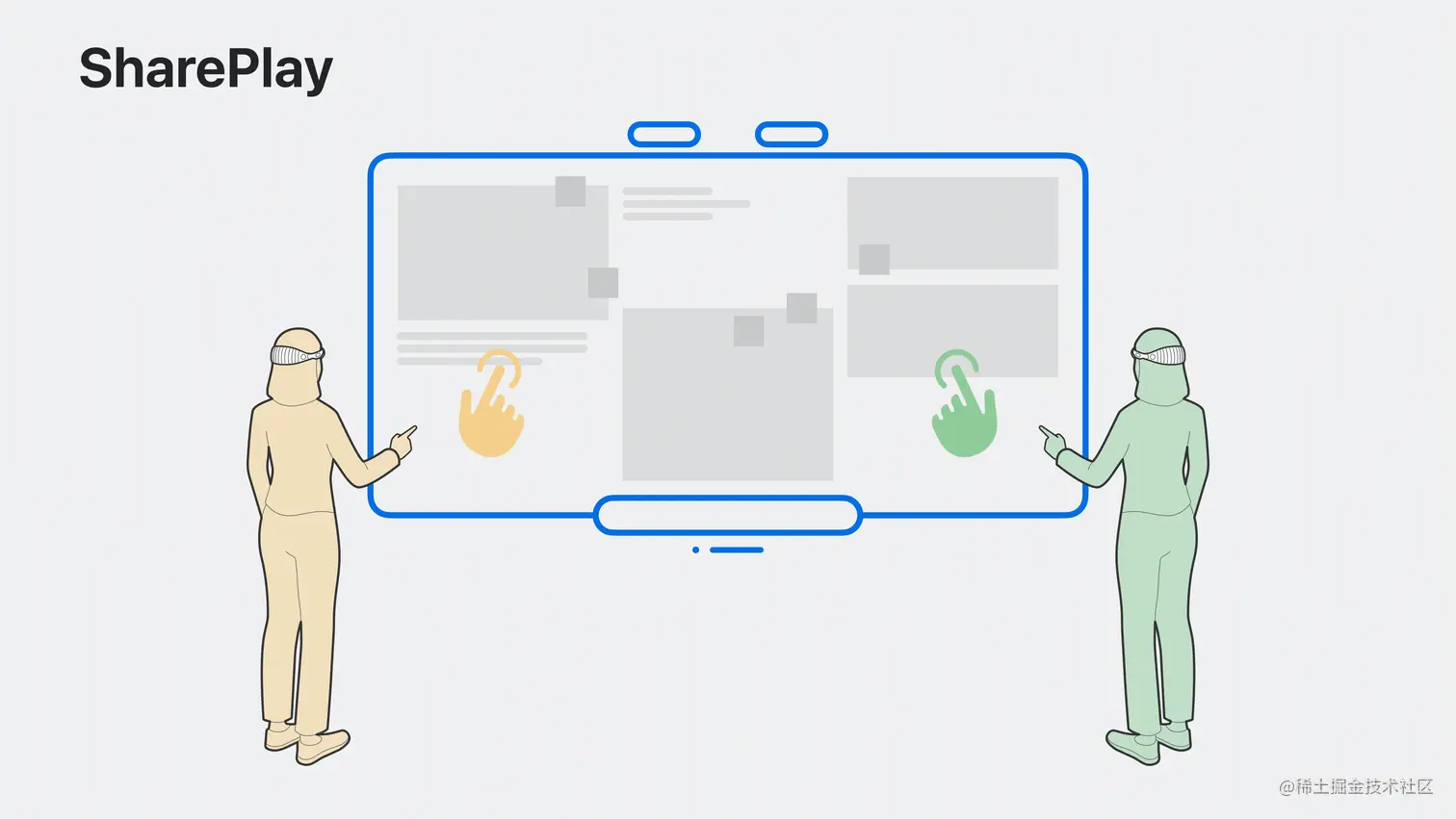当人们就其空间中显示的并且他们实际指向的内容进行协作时,SharePlay 会话中的每个人都拥有相同的体验非常重要。