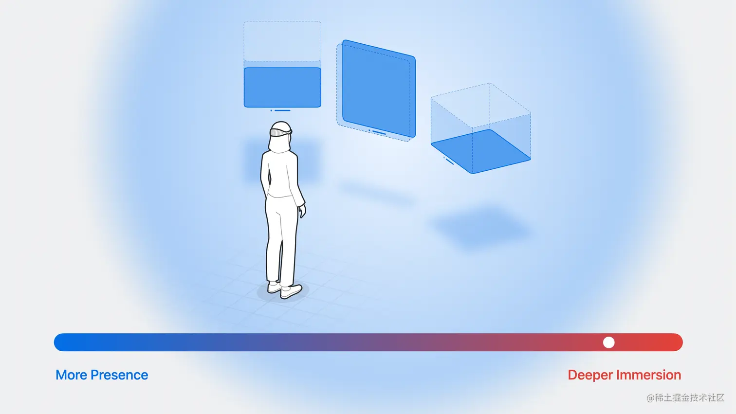 通过空间,您的应用程序还可以提供不同级别的沉浸感,具体取决于创建时选择的样式。沉浸式风格是一个可以在完整空间中传递的参数。