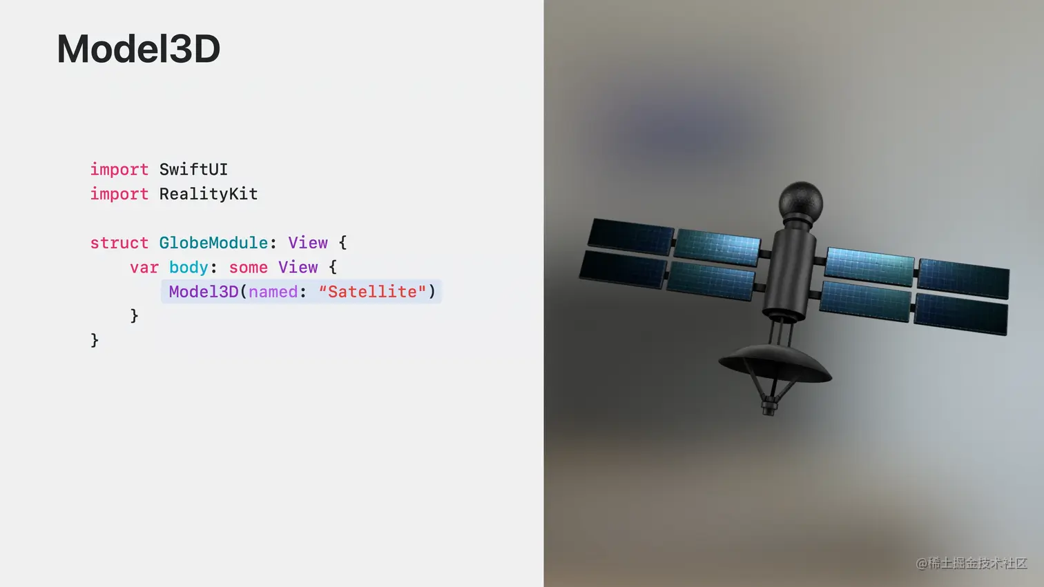 Model3D 类似于图像,可以轻松在应用程序中加载和显示由 RealityKit 渲染的精美 3D 内容。