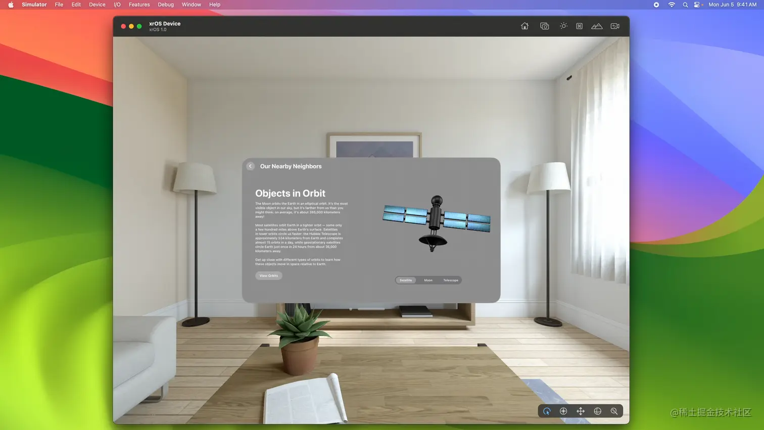 现在我们已经添加了卫星,我们可以添加交互,交互从根本上内置于系统中并由 SwiftUI 提供。