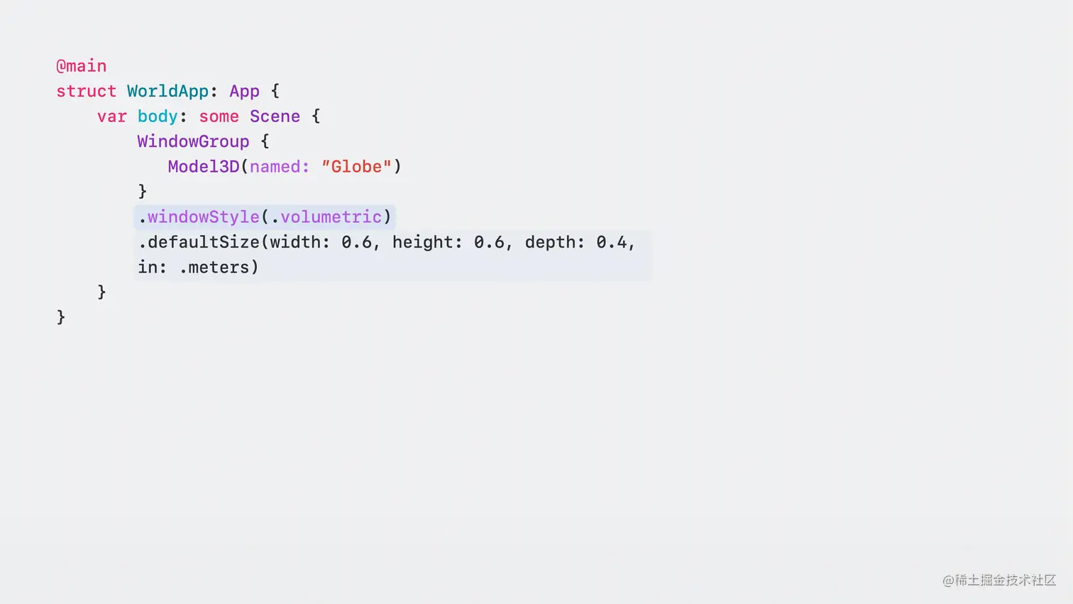 让我们看看如何向场景添加卷。您将首先创建一个新的 WindowGroup 并将其 windowStyle 设置为卷。