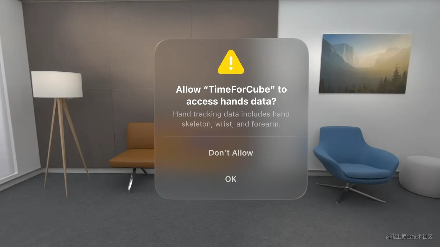例如,请求用户允许访问场景理解以检测墙壁和家具,或访问骨骼手部跟踪以将自定义交互引入您的应用程序。