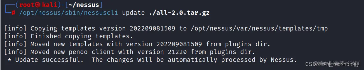 /opt/nessus/sbin/nessuscli update ./all-2.0.tar.gz