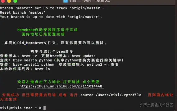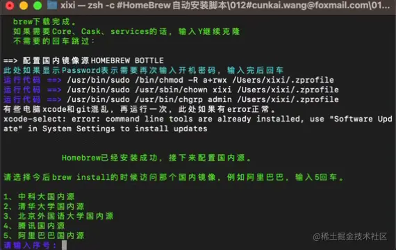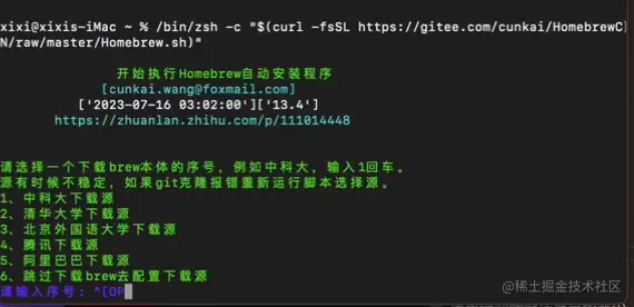6.重启终端或者运行source /Users/xixi/.zprofile 让brew生效