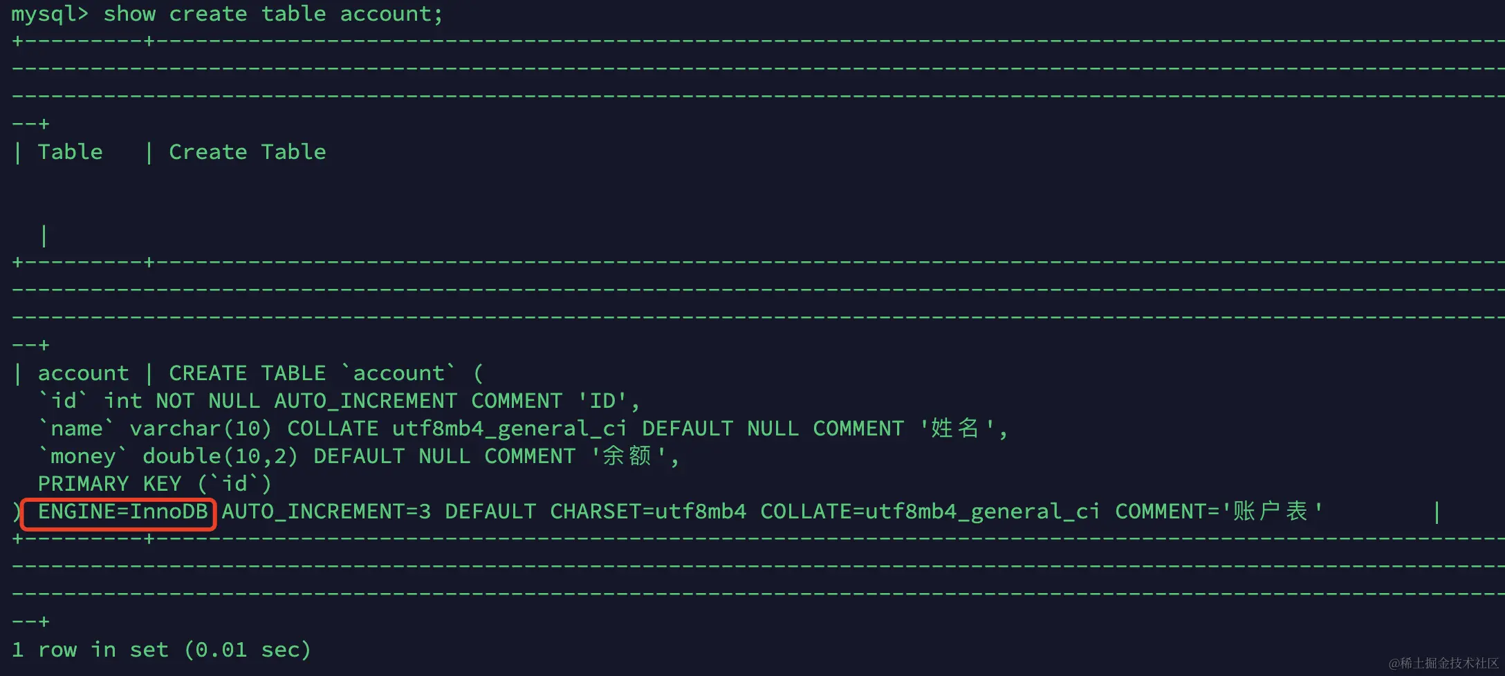 (1). 案例1:查询建表语句 --- 默认存储引擎:InnoDB