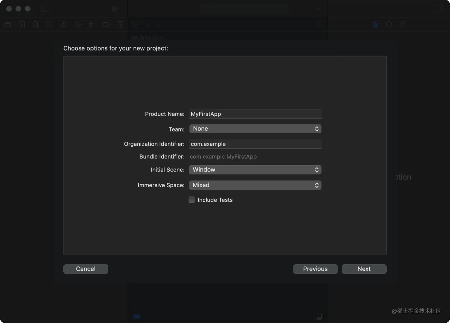 在创建新的 visionOS 应用时,你可以从配置对话框中配置你的应用的初始场景类型。如果你想在你的初始场景中主要显示 2D 内容,选择窗口(Window) 作为你的初始场景类型。如果主要是 3D 内容,选择空间容器元素(Volume) 。你也可以添加一个沉浸式场景,将你的内容放置在人的周围环境中。