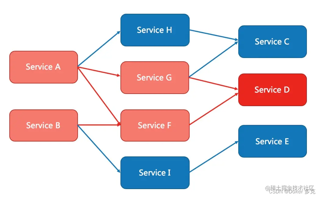 现代微服务架构都是分布式的,由非常多的服务组成。不同服务之间相互调用,组成复杂的调用链路。以上的问题在链路调用中会产生放大的效果。复杂链路上的某一环不稳定,就可能会层层级联,最终导致整个链路都不可用。因此我们需要对不稳定的弱依赖服务调用进行熔断降级,暂时切断不稳定调用,避免局部不稳定因素导致整体的雪崩。熔断降级作为保护自身的手段,通常在客户端(调用端)进行配置。