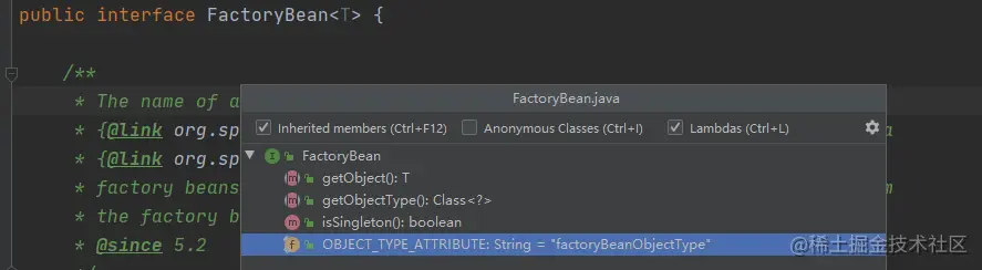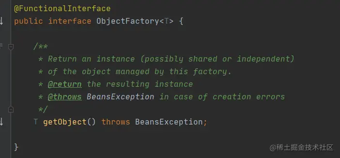 如果一个对象实现了这接口,那它就成为一种特殊的 Bean,注册到 IOC 容器之后,如果调用 getBean 获取得到的其实是 FactoryBean#getObject() 方法返回的结果。
