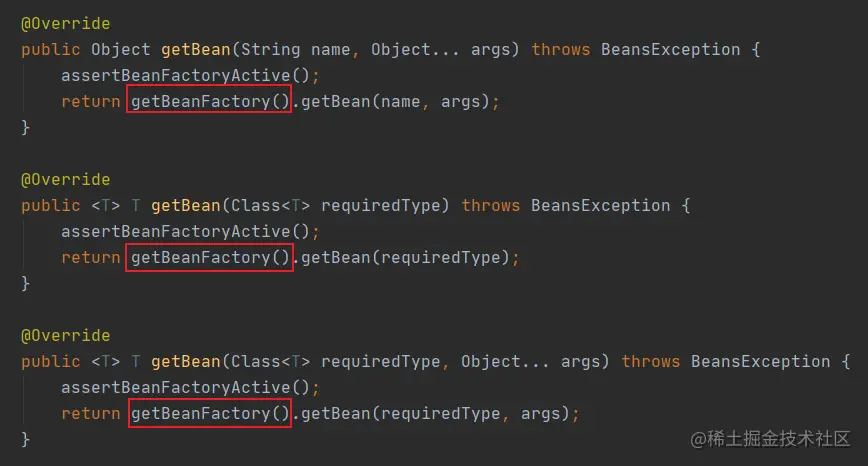 例如我们调用 getBean ,这就是 BeanFactory 定义的方法,通过它得到 Bean。