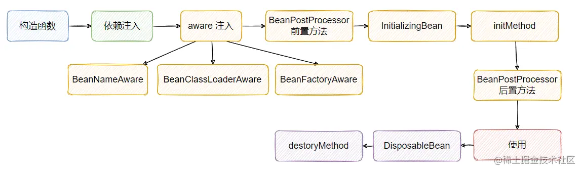 有了上面的认识,我们再来看 Spring Bean 的生命周期,我用一幅图先总结一下:
