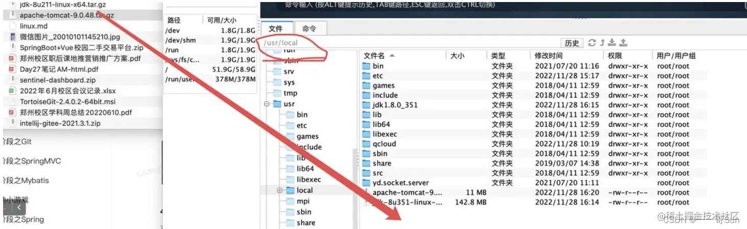 本项目运行所需要的主要是JDK+Tomcat+MySQL,所以我们需要先搭建项目所需的环境。我这里为了方便,所使用的Linux目录为:/usr/local