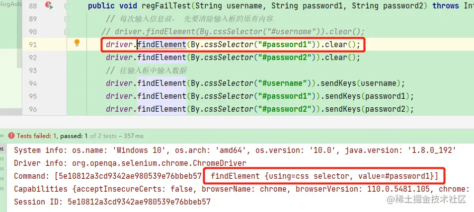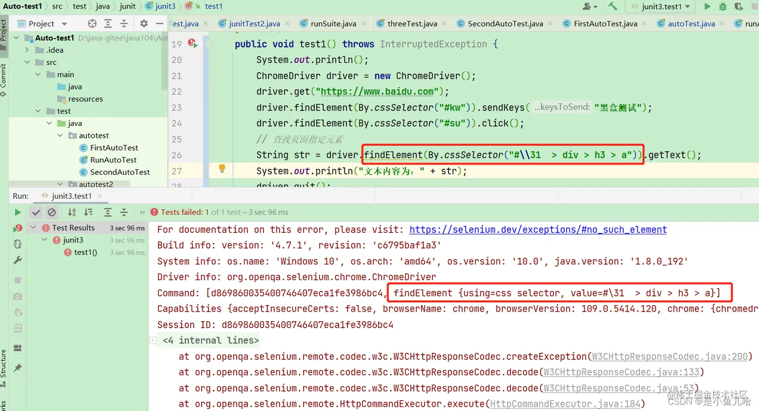 可以看到,报了错误——》找不到我们页面对应的元素。