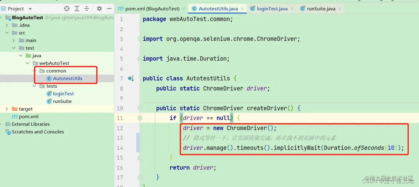 因此,我们不如在整个项目中,创建一个公共类(进行隐式等待,让我们的程序能够等一下我们的页面加载)