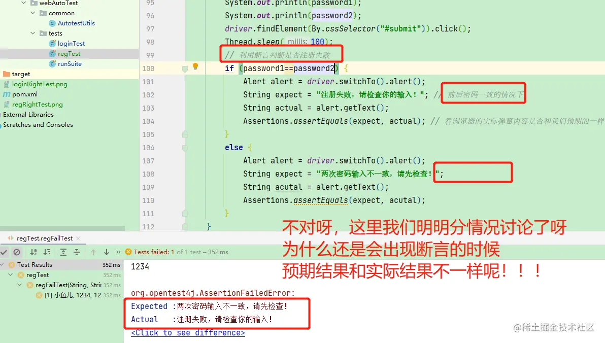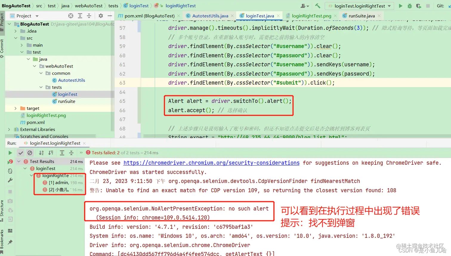 在验证用户正常登录的过程中,我一开始没有用强制等待或者显示等待(我只是用了隐式等待)。结果——在处理弹窗的过程就出现了问题。
