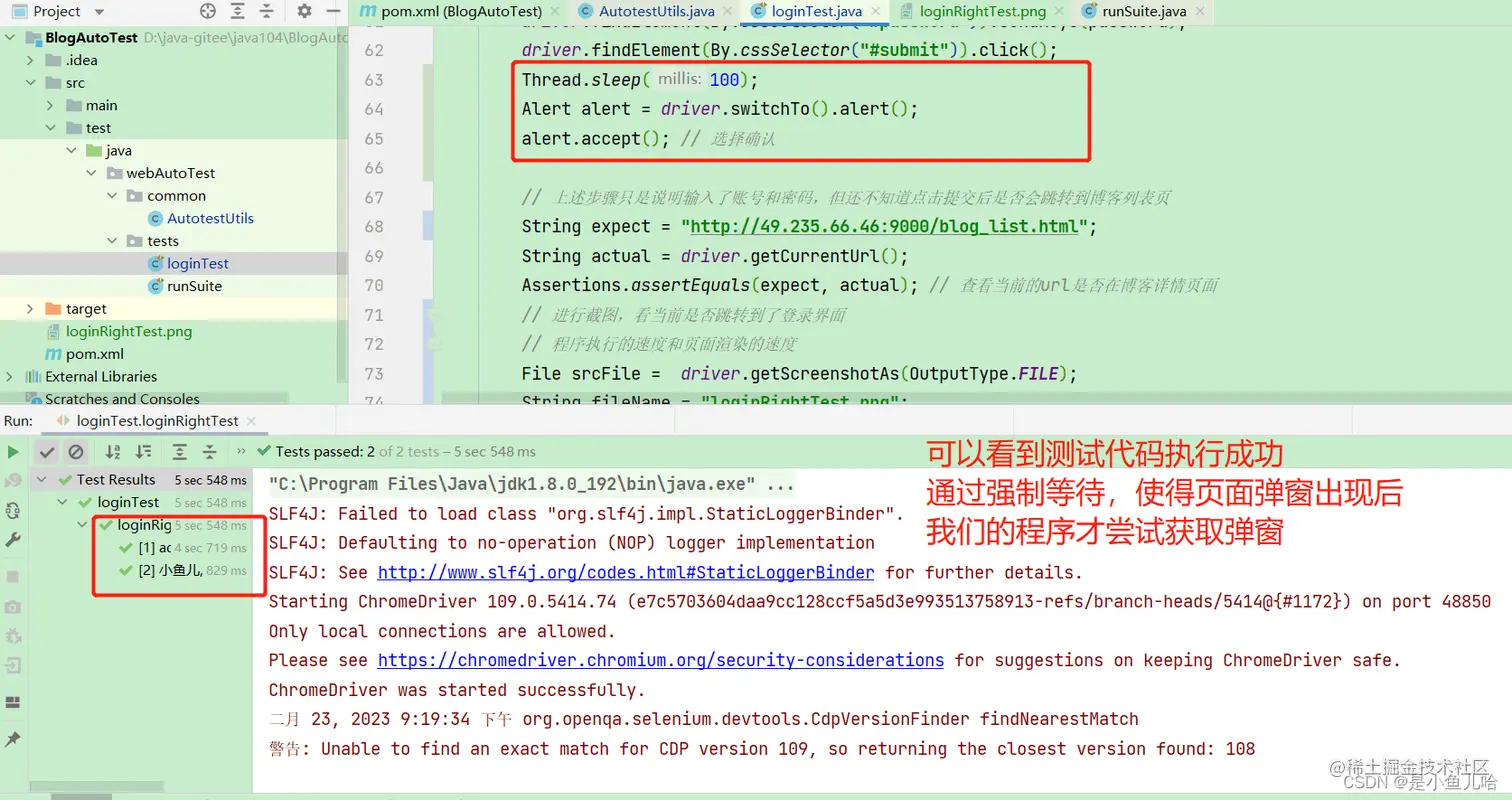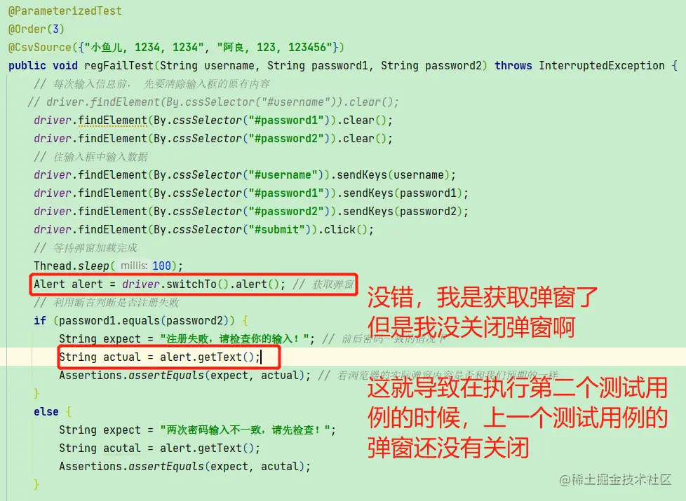 Thread.sleep(100); // 强制等待弹窗的出现(隐式等待无法处理弹窗/显示等待和隐式等待尽量不共存)