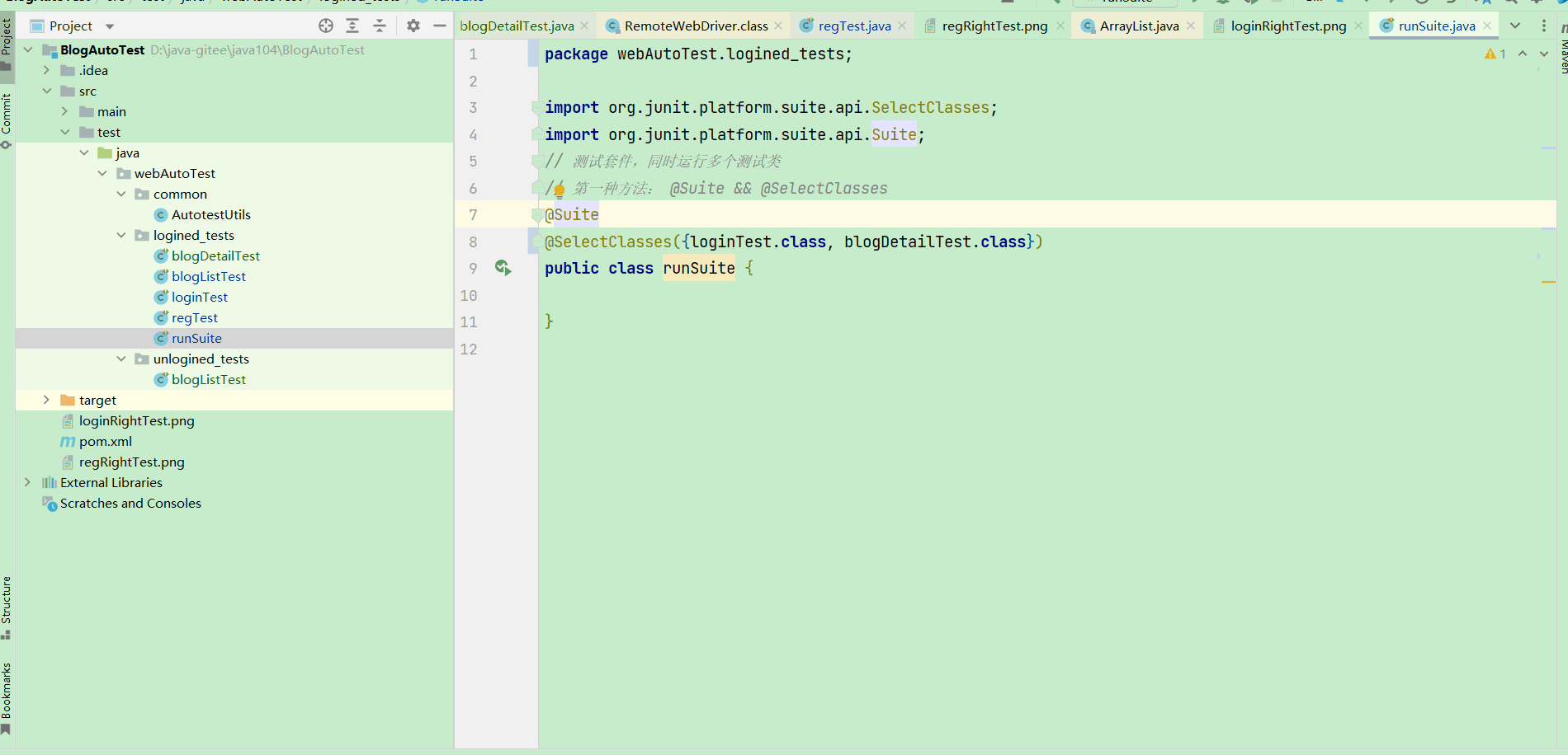 Assertions.assertEquals(expect, actual); // 查看当前的url是否在博客详情页面