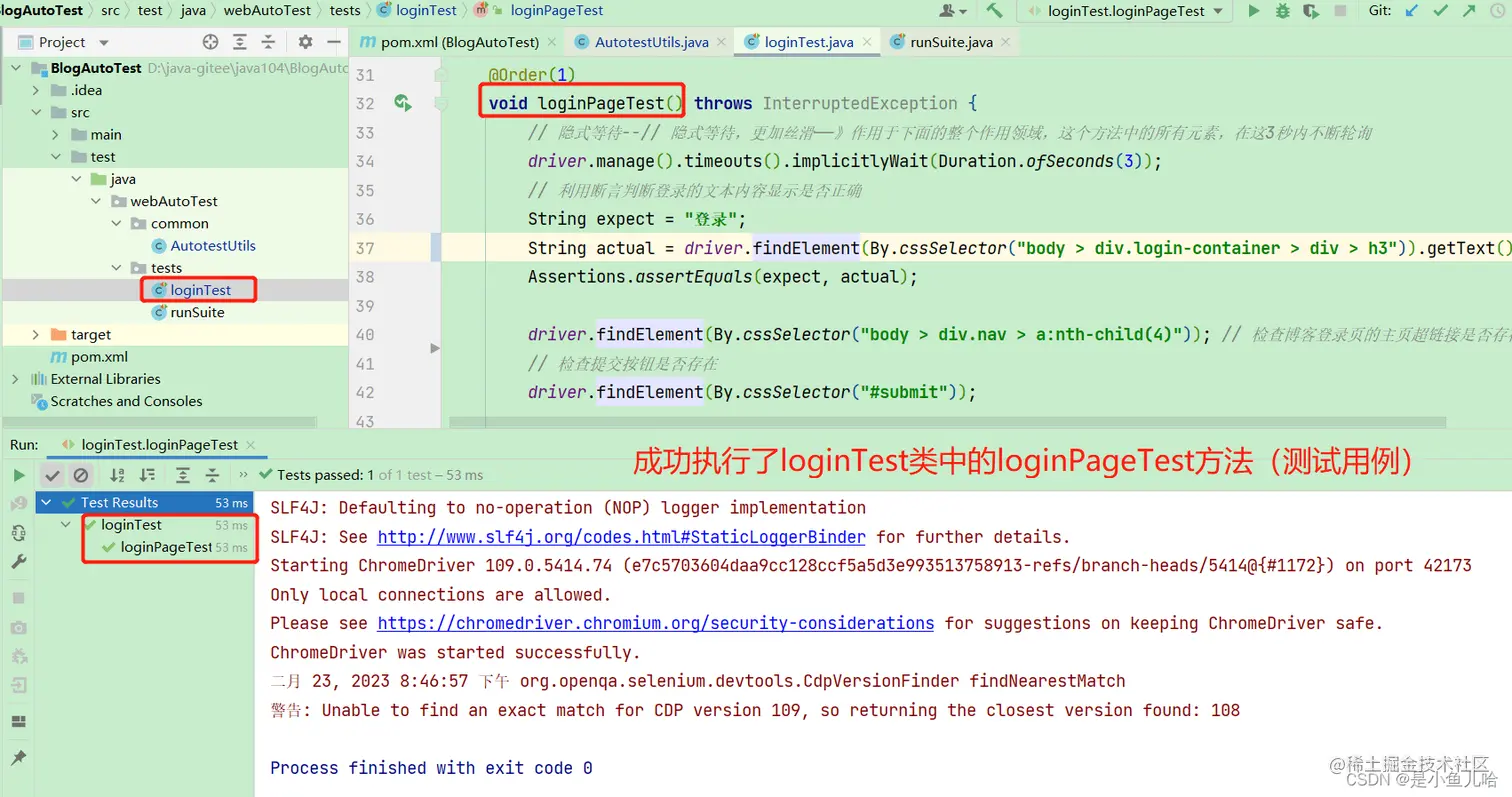 // 上述步骤只是说明输入了账号和密码,但还不知道点击提交后是否会跳转到博客列表页