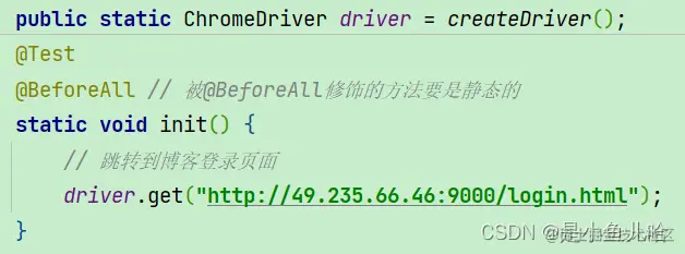 但是我们是借助selenium来进行自动化测试,那么这样一来,selenium就调用不了这个测试方法了————》当然也就执行不了测试用例了。