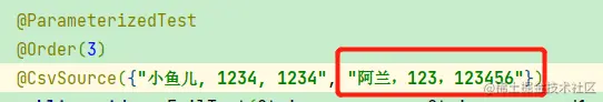 @ParameterizedTest // 写了该注解就不用在写@Test注解了(多参数)
